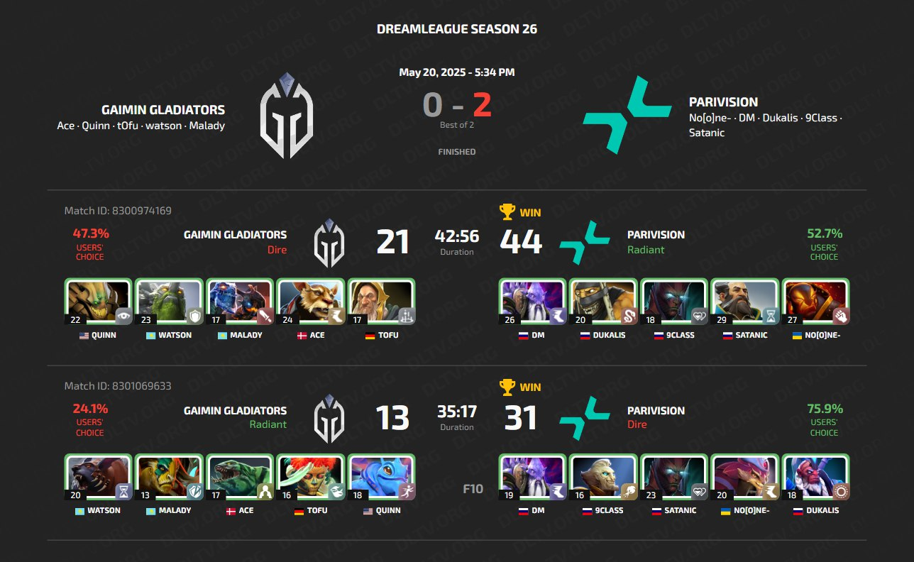 The Gaimin Gladiators were handed a 0-2 loss by PARIVISION, but they are still in a comfortable position after going 5-1 before the series. This puts Quinn and the boys in third place with a respectable 5-3 record.