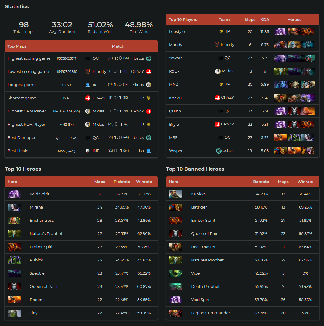 We added statistics to the tournaments' pages that show their highlights. All data is updating in real-time after each played match.